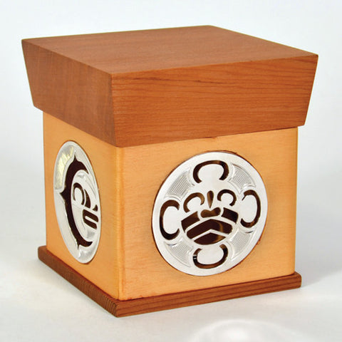 All of the work in the creation of these small cedar boxes was donated: the boxes were steam-bent and constructed by Métis/Cree artist James Michels; the promotion and collected funds were be donated by Lattimer Gallery; and all the artwork was donated by the artists. 100% of the proceeds were donated to the Urban Native Youth Association.