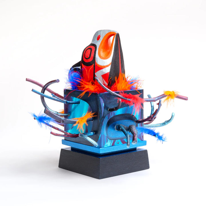All of the work in the creation of these small cedar boxes was donated: the boxes were steam-bent and constructed by Métis/Cree artist James Michels; the promotion and collected funds were be donated by Lattimer Gallery; and all the artwork was donated by the artists. 100% of the proceeds were donated to the Urban Native Youth Association.