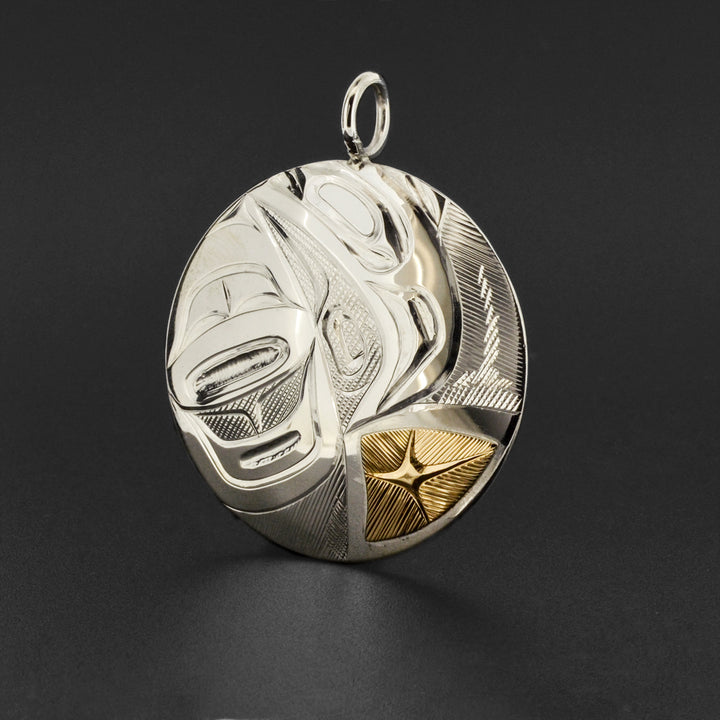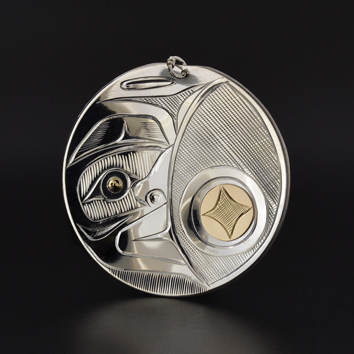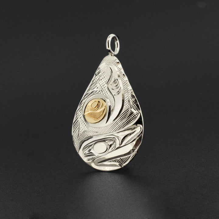 Raven - Silver Pendant with 14k Gold