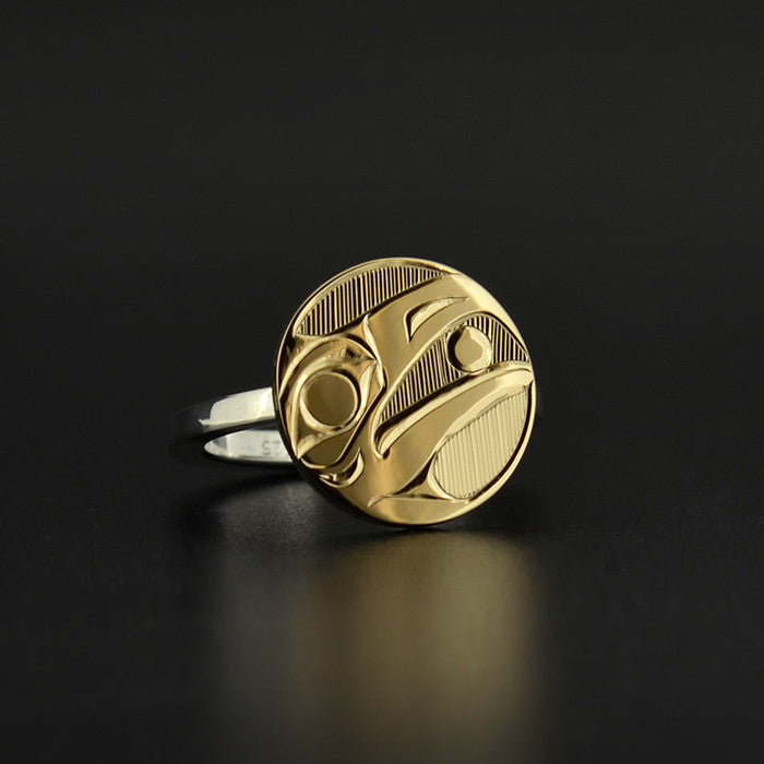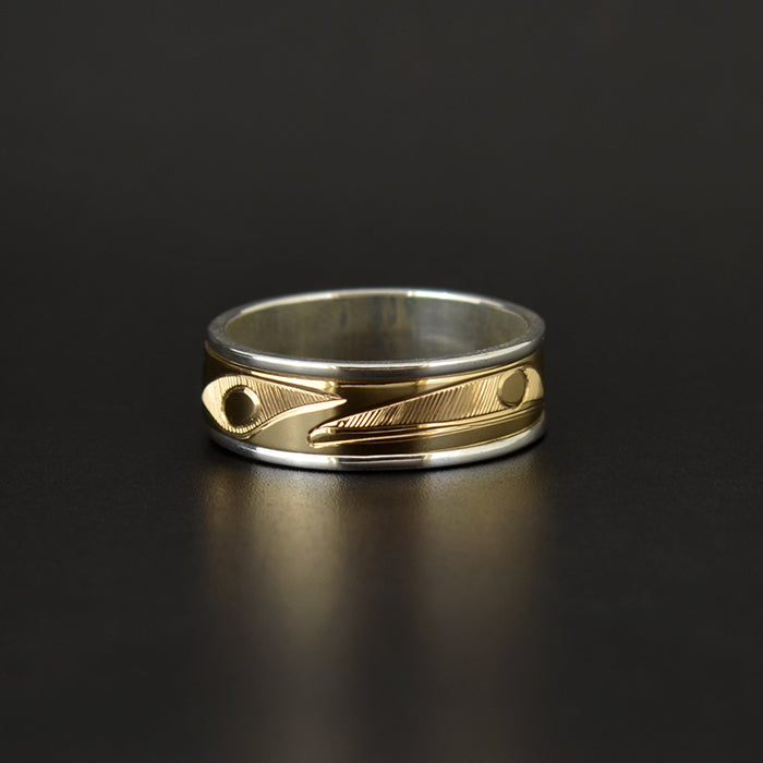 Raven and the Light - Silver Ring with 14k Gold Spinner