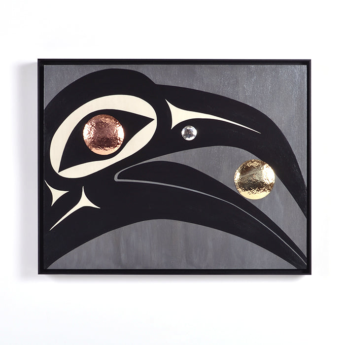 Raven and the Light - Acrylic on Wood Panel with Mixed Metals