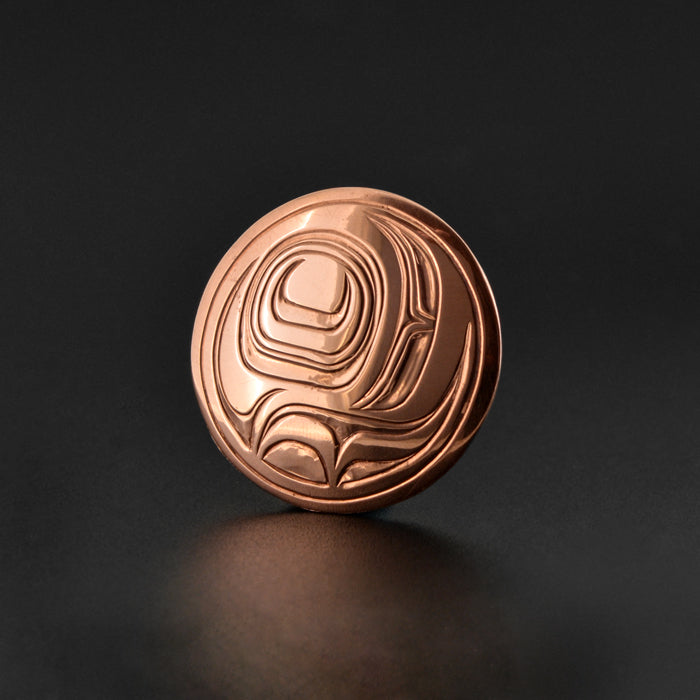 Joe R. Wilson (Hak’wesagame’) is a Kwakwaka'wakw/'Namgis artist born on January 14, 1966 in Yalis (Alert Bay, BC). He is the grandson of 'Namgis Hereditary Chief Alvin Edgar Alfred (K’odi U’dzistalis). At the age of 13, Joe took a design course with Doug Cranmer, but did not begin carving professionally until age 21, when he discovered and was deeply inspired by the works of master carver Chief Willie Seaweed. From 1996 to 1997, Joe led a team of carvers in the construction of a Kwakwaka'wakw style village at Dolfinarium Harderwijk, a marine mammal park in the Netherlands. Beyond his early training, he is largely self-taught. Whether he is carving wood, silver, copper, or gold, Joe is known for his intricate and detailed style.