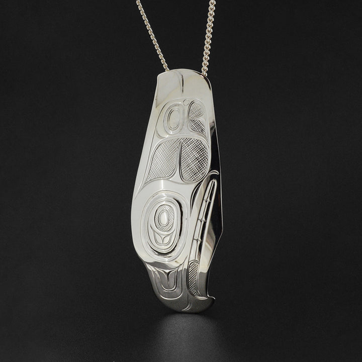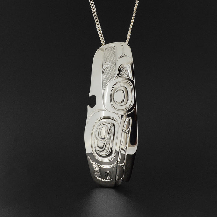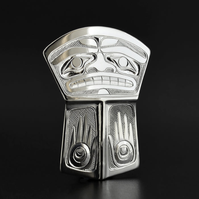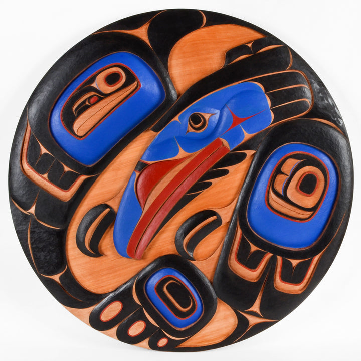 Kelly Robinson learned Nuxalk design and conventions from Nuxalk artist Alvin Mack. He began painting in 1997, and familiarized himself with Northwest Coast aesthetics. While Kelly has made a name for himself with his carving and jewellery, he has started to branch out and apply his designs to other media. For example, he has created several bentwood boxes for Lattimer Gallery. Kelly also graduated from the Northwest Coast Jewellery Arts program at Vancouver's Native Education College in March of 2010. Immediately following this, he apprenticed under Haida jeweler, James McGuire. In 2012, Kelly graduated from the Freda Diesing School of Northwest Coast Art. He continued his studies under a mentorship program with Tim Paul, during which time Kelly enlightened himself with Nuu-chah-nulth stories and perfected his mask-making abilities in the Nuu-chah-nulth style. In 2019, Kelly was awarded the YVR Art Foundation Mid-Career Artist Scholarship for his contributions to Indigenous art in BC. In 2020, he won the BC Achievement Fulmer Award in First Nations Art. Many of his pieces display traditional Nuxalk design with a modern twist, such as reversing positive and negative space in places.