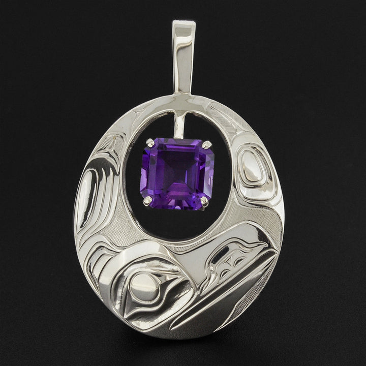 Raven - Silver Pendant with Amethyst