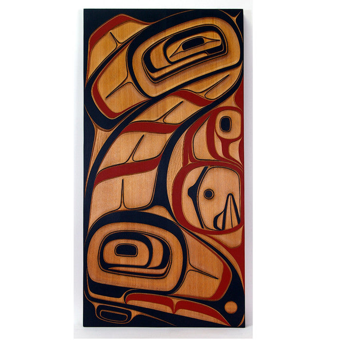 Phil Gray belongs to the Killerwhale Clan and his works are created in his traditional Ts'msyen style. He began carving in 1998 with Salish artist Gerry Sheena. He also had the opportunity to work with David Boxley, Henry Green, and Rick Adkins early in his career. Phil primarily works in red cedar and creates masks, paintings, panels, poles, sculptures, and drums. In September of 2003, Phil had three of his pieces donated to the Burke Museum in Seattle, WA. In 2005, Phil was featured in the Changing Hands: Art Without Reservation 2 exhibition at the Museum of Art and Design in New York, NY. In 2007, Phil completed the Northwest Coast Jewellery Arts Program at the Native Education College in Vancouver, BC, under Kwakwaka’wakw/Haida artist Dan Wallace. Phil was included in two major exhibitions in 2009. The first was the Challenging Traditions exhibition at Ontario's McMichael Gallery, a show that was dedicated to exploring innovative and experimental works from the Northwest Coast. The second was Continuum: Vision and Creativity on the Northwest Coast at Vancouver's Bill Reid Gallery, which highlighted 23 established Aboriginal artists from BC, Washington State, and Alaska. In February of 2010, Phil designed the helmet of gold medal-winning Skeleton racer Jon Montgomery. Montgomery held Phil's helmet throughout the Olympic awards ceremony. In 2012, Phil was included in the Vancouver Art Gallery's Shore, Forest, and Beyond exhibition. In 2014, Phil was awarded a BC Creative Achievement Award for his contributions to the province. In 2017, Phil won two major prizes: a YVR Art Foundation Mid-Career Scholarship and a REVEAL Indigenous Art Award, which was issued in celebration of Canada's 150th birthday.