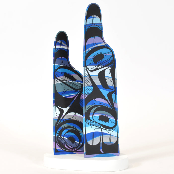 Spyhop Killerwhale with Calves - Basswood Sculpture