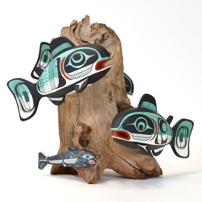 School of Salmon - Red Cedar and Reclaimed Driftwood