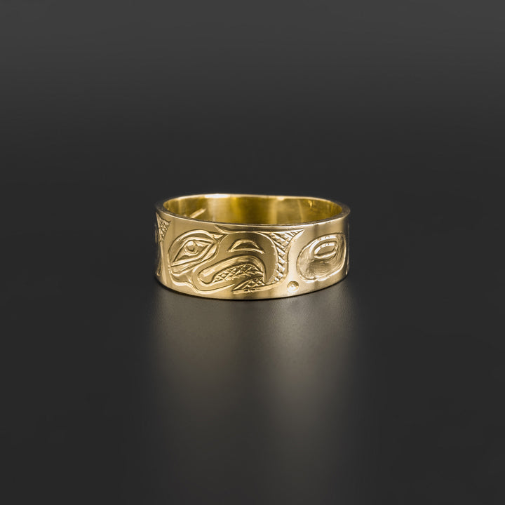 Kelvin Thompson carves jewellery in silver and gold, but also creates bowls and masks from alder, maple, and cedar. In 1979, he studied under and worked with Haisla artists Barry and Derek Wilson at the Vancouver Aboriginal Friendship Centre, and in 1980, he carved a totem pole with Haisla carver Henry Robertson for the Aboriginal Friendship Centre in Vancouver, BC. Kelvin has been adopted into Henry's Haisla family. From oxidizing to intricate cut-out work, Kelvin is always experimenting and trying new things with his jewellery. In addition, he has taught many artists how to carve in silver and gold, and he is passionate about passing skills and information on to younger carvers. From September 2007 to February 2008, Kelvin aided Haida/Kwakwaka’wakw artist Dan Wallace in teaching the first annual Northwest Coast Jewellery Arts Program at Vancouver’s Native Education College. In 2009, Kelvin was commissioned to engrave five cuff bracelets for James Taylor, Elvis Costello, Diana Krall, Elton John, and Vicki Gabereau for the Vancouver General Hospital & the University of British Columbia's Hospital Foundation fundraiser An Evening with Diana Krall. In 2019, he was featured in the landmark publication Understanding Northwest Coast Indigenous Jewelry by author Alex Dawkins.