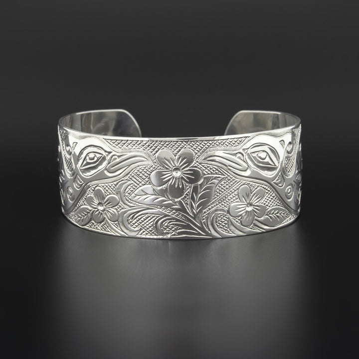 Kelvin Thompson carves jewellery in silver and gold, but also creates bowls and masks from alder, maple, and cedar. In 1979, he studied under and worked with Haisla artists Barry and Derek Wilson at the Vancouver Aboriginal Friendship Centre, and in 1980, he carved a totem pole with Haisla carver Henry Robertson for the Aboriginal Friendship Centre in Vancouver, BC. Kelvin has been adopted into Henry's Haisla family. From oxidizing to intricate cut-out work, Kelvin is always experimenting and trying new things with his jewellery. In addition, he has taught many artists how to carve in silver and gold, and he is passionate about passing skills and information on to younger carvers. From September 2007 to February 2008, Kelvin aided Haida/Kwakwaka’wakw artist Dan Wallace in teaching the first annual Northwest Coast Jewellery Arts Program at Vancouver’s Native Education College. In 2009, Kelvin was commissioned to engrave five cuff bracelets for James Taylor, Elvis Costello, Diana Krall, Elton John, and Vicki Gabereau for the Vancouver General Hospital & the University of British Columbia's Hospital Foundation fundraiser An Evening with Diana Krall. In 2019, he was featured in the landmark publication Understanding Northwest Coast Indigenous Jewelry by author Alex Dawkins.